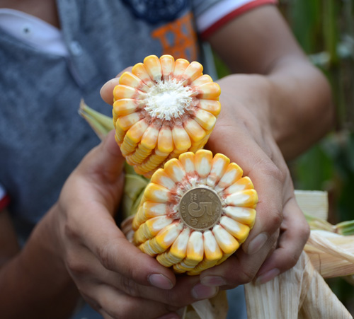 特征特性:平均生育期106天左右。株高 275厘米,穂位 100厘米。穗長(zhǎng) 18.5 厘米,穗行數(shù) 16-18 行。穗軸紅色,籽粒黃色,馬齒型,百粒重 35.4克。