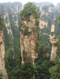 8日早上,我們乘坐“世界第一梯”——百龍?zhí)焯葜猎医绶屙?,這里是舉世聞名,奇特罕見(jiàn)的砂巖地貌。舉目遠(yuǎn)望,三千奇峰盡收眼底,怪石嶙峋,星羅棋布,雄險(xiǎn)秀野,神態(tài)各異。峽谷深處,千百根石峰石柱奇?zhèn)ネ涣ⅰ>椭?,如英武將帥;嵯峨之峰,似勇猛壯士。天氣陰沉,下起小雨,此時(shí),峰谷內(nèi)云翻霧涌,數(shù)座山峰如中流砥柱巋然屹立于云霧之中,云海淼淼,如入蓬萊仙境,那里面一定住著神仙吧。
